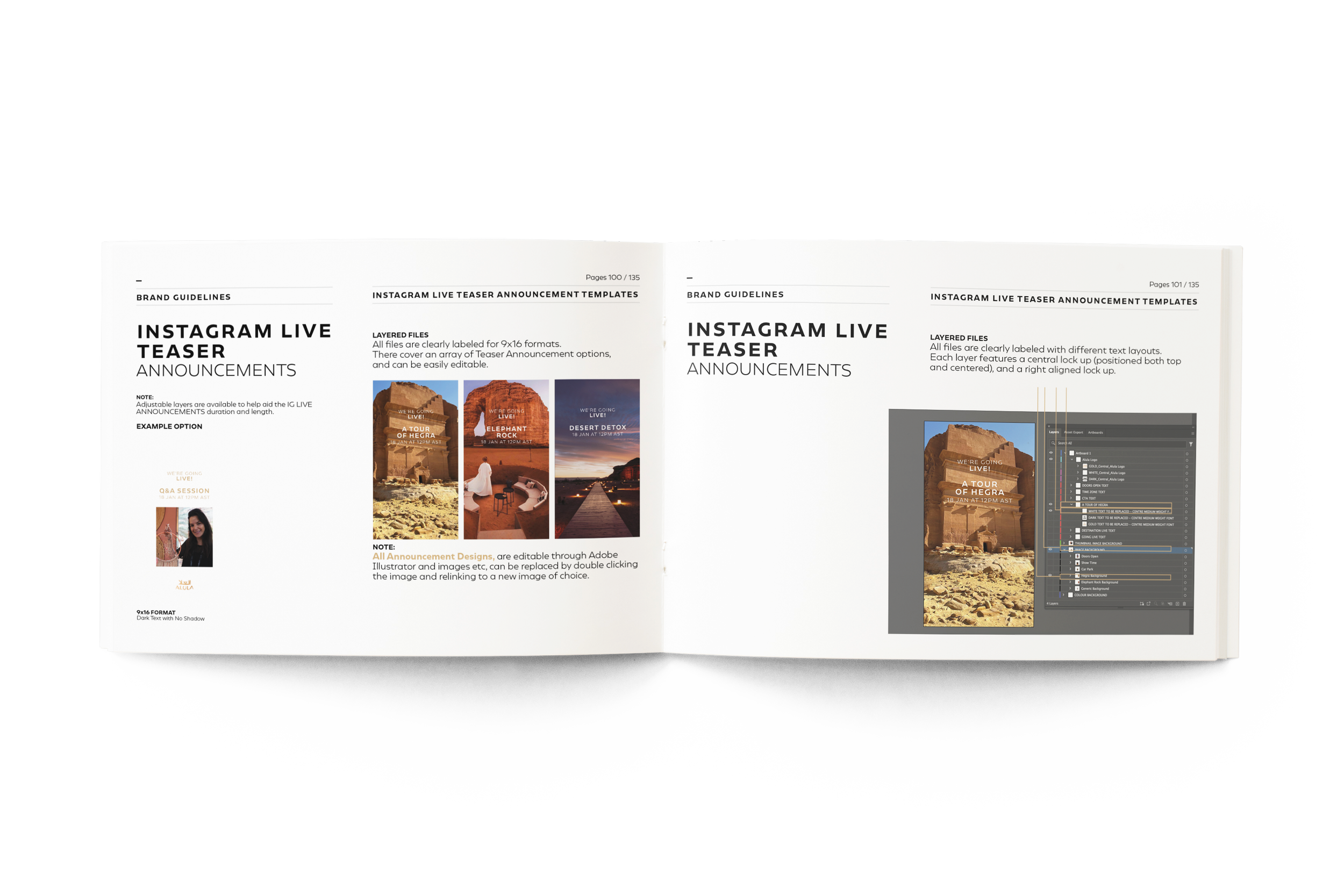 Each element, from bespoke typography to curated photography, is crafted to highlight AlUla’s luxurious offerings and natural beauty, inviting global audiences to explore and connect.