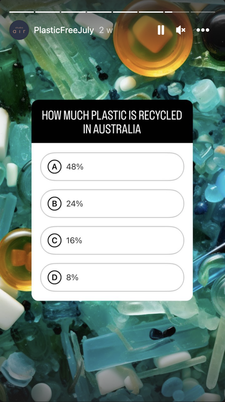 We showcased this work on our Instagram and paired it with a quiz to test our followers' knowledge on Reduce, Reuse, and Recycle. Dive into our highlight stories @wearestudioair to test your knowledge and join us in making a difference!